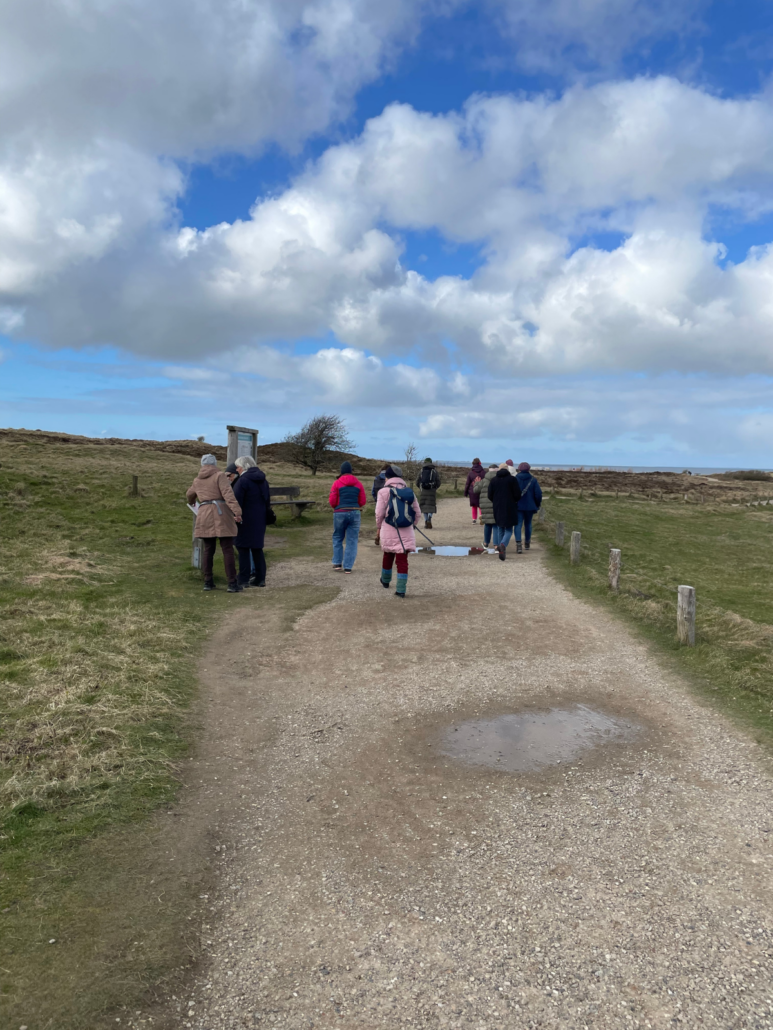 Einmal in der Woche, meistens mittwochs und je nach Wetter, machen wir einen gemeinsamen Ausflug. Mein Lieblingsweg: Wir starten in Wenningstedt, laufen über die Braderuper Heide nach Kampen, kehren in der Kupferkanne auf einen Kaffee ein, wandern weiter zum Leuchtturm Kampen und zur Uwe-Düne, über das Rote Kliff zurück nach Wenningstedt. Den Rückweg mit dem Bus zur Akademie. Das sind die Stunden, in denen man nebeneinanderhergeht und plötzlich Gespräche führt, die so am Küchentisch nie passieren würden.
